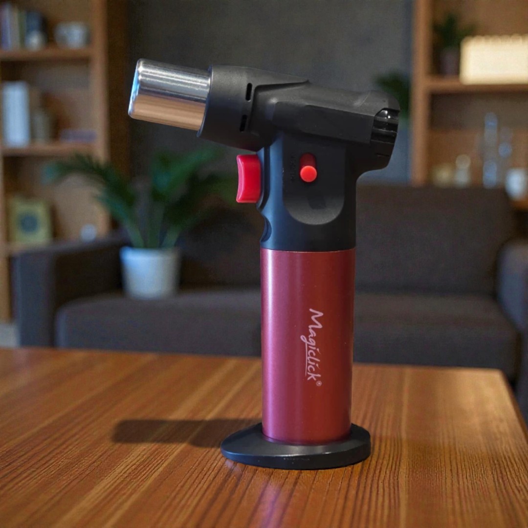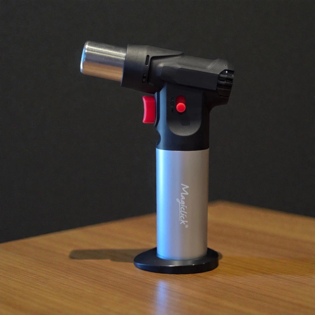 Encendedor soplete de mesa, llama simple, regulable y gran capacidad de carga.